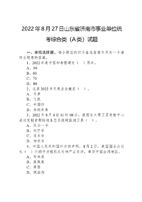 2022年8月27日山东省济南市事业单位统考综合类(A类)试题.docx
