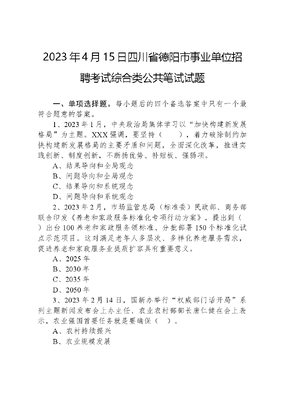 2023年4月15日四川省德阳市事业单位招聘考试综合类公共笔试试题.docx