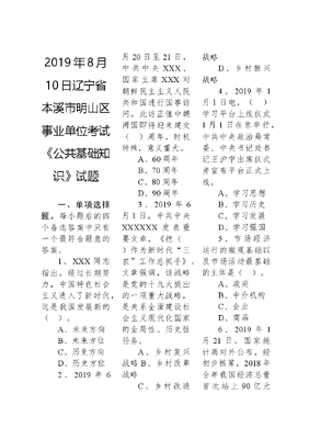 2019年8月10日辽宁省本溪市明山区事业单位考试《公共基础知识》试题.docx