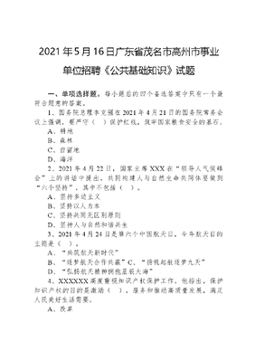 2021年5月16日广东省茂名市高州市事业单位招聘《公共基础知识》试题.docx