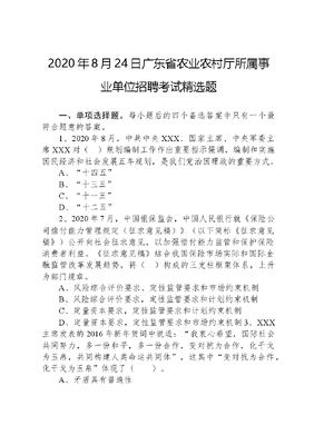 2020年8月24日广东省农业农村厅所属事业单位招聘考试精选题.docx