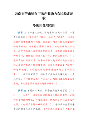 【001】云南省芒市鲜食玉米产业助力农民稳定增收.docx