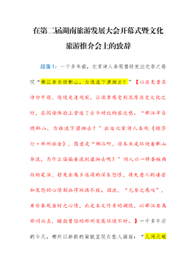 【005】在第二届湖南旅游发展大会开幕式暨文化旅游推介会上的致辞.docx