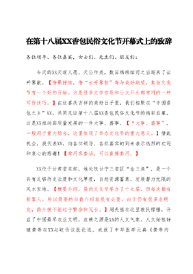 【008】在第十八届XX香包民俗文化节开幕式上的致辞.docx