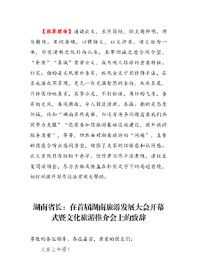 【010】湖南省长:在首届湖南旅游发展大会开幕式暨文化旅游推介会上的致辞.docx
