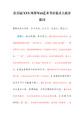 【006】在首届XXX风筝年画艺术节开幕式上致开幕词.docx