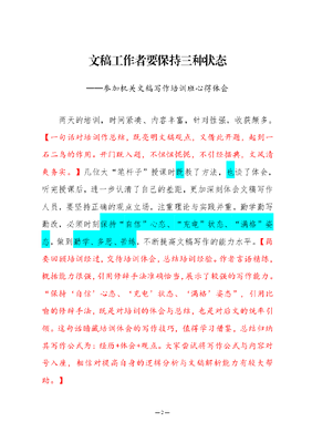 【014】参加全省机关文稿写作培训班心得体会:文稿工作者要保持三种状态.pdf