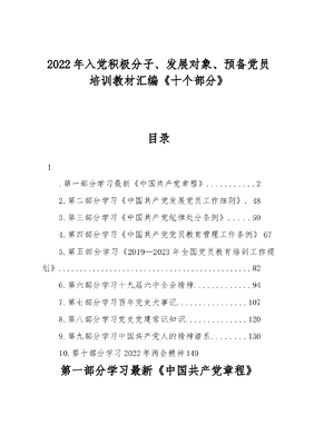 2022年入党积极分子、发展对象、预备党员培训教材汇编《十个部分》.docx