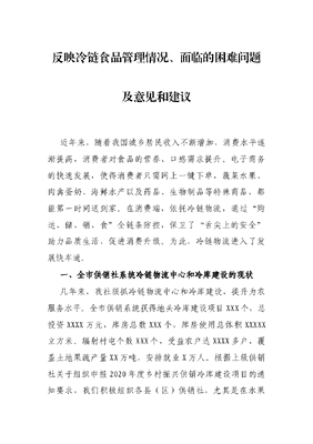 反映冷链食品管理情况、面临的困难问题及意见和建议.docx