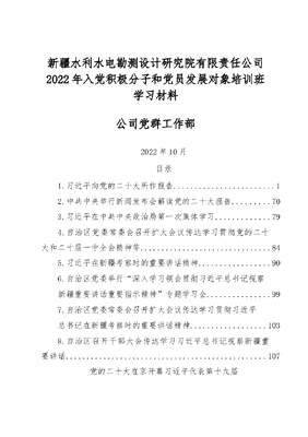 设计院2022年入党积极分子和党员发展对象培训班学习资料汇编.docx
