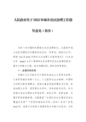人民政府关于2022年城乡社区治理工作指导意见(镇乡).docx
