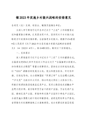 镇2023年实施乡村振兴战略的安排意见.docx