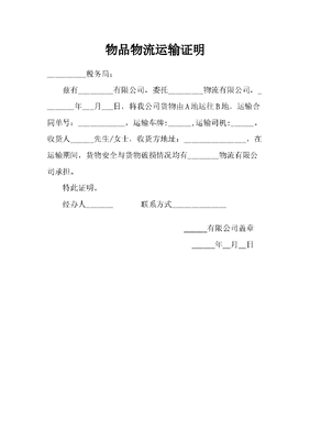 物品物流运输证明.docx
