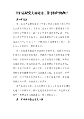 银行基层党支部党建工作考核评价办法.docx