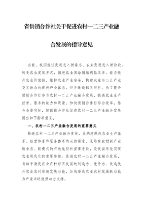 省供销合作社关于促进农村一二三产业融合发展的指导意见.docx