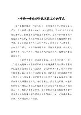 关于进一步做好防汛抗洪工作的要求.docx