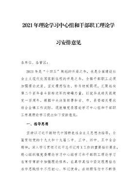 2021年理论学习中心组和干部职工理论学习安排意见.docx