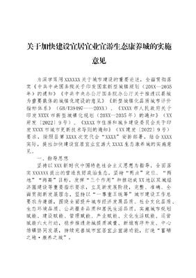 关于加快建设宜居宜业宜游生态康养城的实施意见.docx