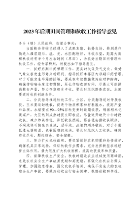 2023年后期田间管理和秋收工作指导意见.docx