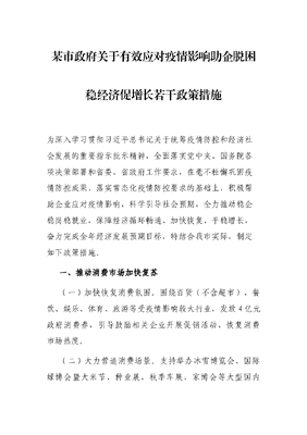 某市政府关于有效应对疫情影响助企脱困稳经济促增长若干政策措施.docx