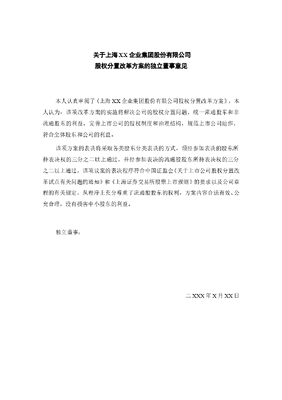 关于上海XX企业集团股份有限公司股权分置改革方案的独立董事意见.doc