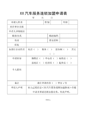 新涵养汽车服务连锁加盟申请表.doc