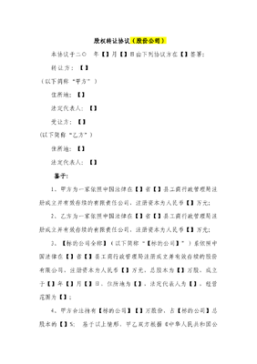 股份公司股权转让协议范本(网络范本).docx