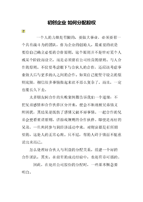 初创企业-如何分配股权.doc