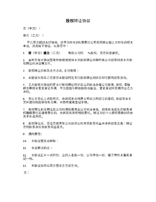 最新股权股份转让协议范本.doc