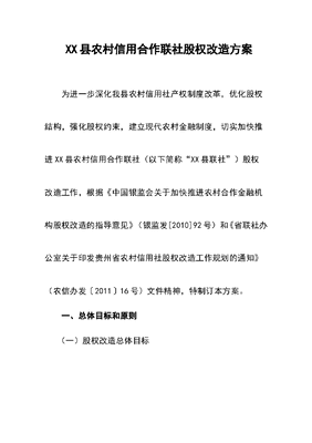 农村信用合作联社股权改造方案.doc