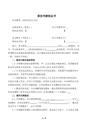 股权代持协议及其相关法律文书范文.doc