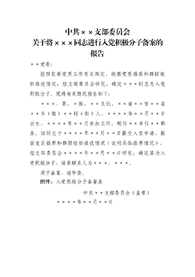 关于将×××同志进行入党积极分子备案的报告.doc