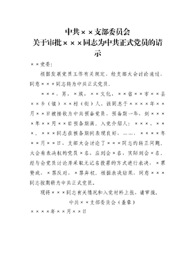关于审批×××同志为中共正式党员的请示.doc