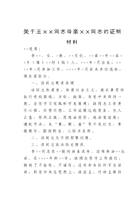关于王××同志母亲××同志的证明材料.doc