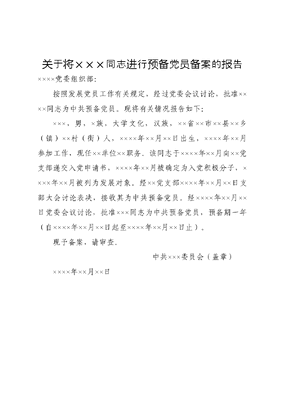 关于将×××同志进行预备党员备案的报告.doc