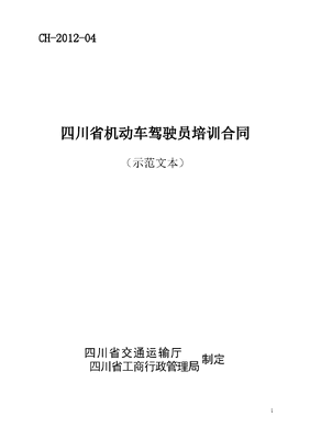 四川省机动车驾驶员培训合同(示范文本)(CH-2012-04).doc
