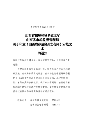 山西省存量房买卖合同示范文本的通知.docx