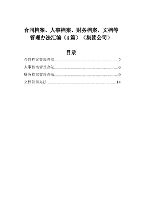 (4篇)合同档案、人事档案、财务档案、文档等管理办法汇编(集团公司).docx