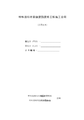 呼和浩特市家庭装饰装修工程施工合同(示范文本).doc