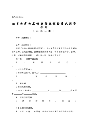 xx省美容美发健身行业预付费式消费合同示范文本.doc
