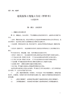 建筑装饰工程施工合同(甲种本) GF—96—0205.docx