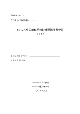 xx市非居民单位厨余垃圾运输服务合同.docx