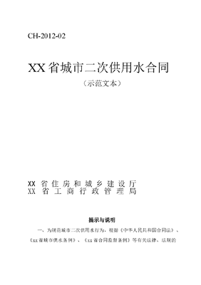 xx省城市二次供用水合同(示范文本).doc