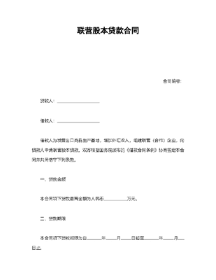 联营股本贷款合同.doc