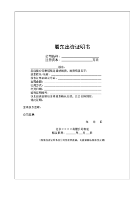 参考工具:《股东出资证明书》V1.doc
