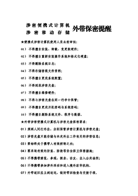 A0809涉密便携式计算机涉密移动存储外带保密提醒.docx