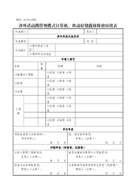 A1303涉外活动携带便携式计算机、移动存储载体保密审批表.doc