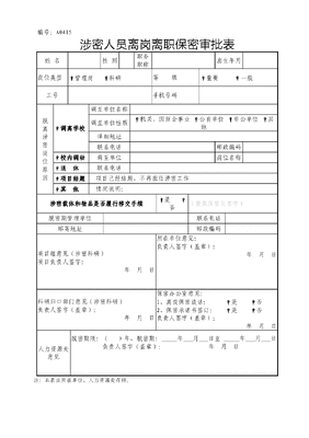 A0415涉密人员离岗离职保密审批表.doc
