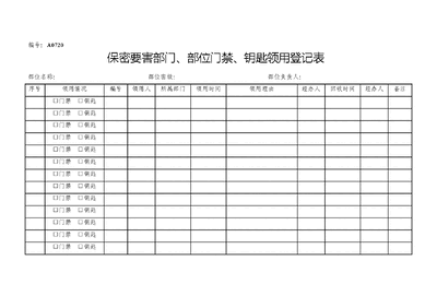 A0720 保密要害部门、部位门禁、钥匙领用登记表.doc