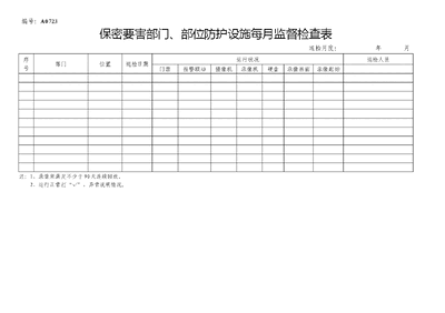 A0723 保密要害部门、部位防护设备设施每月监督检查表.docx